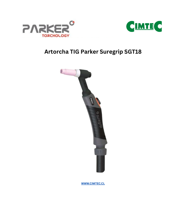 Antorchas PARKER Serie SUREGRIP SGT18 para soldadura TIG. Rango de operaciones: 380A Refrigerada por agua
