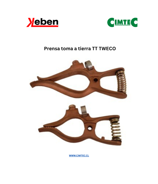 Prensa toma a tierra para soldaduras al arco tipo TT TWECO. Rango de operaciones: 200A, 300A Y 500A